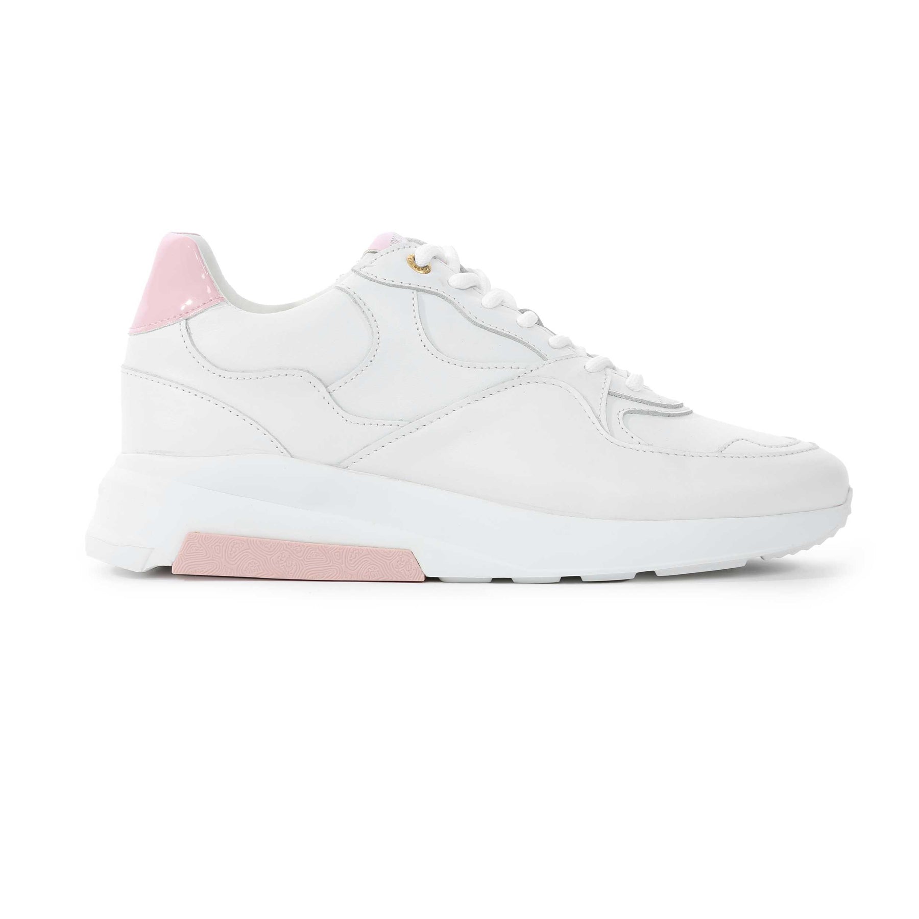 Android Homme Malibu Trainer in White & Pink. Luxury trainers by Android Homme. This Android Homme trainer arrives with a thick sole and a sporty look. Pink detailing to the trainer. Finished off with 7 hole eyelets and Android Homme logo on the tongue and side panel of the trainer.