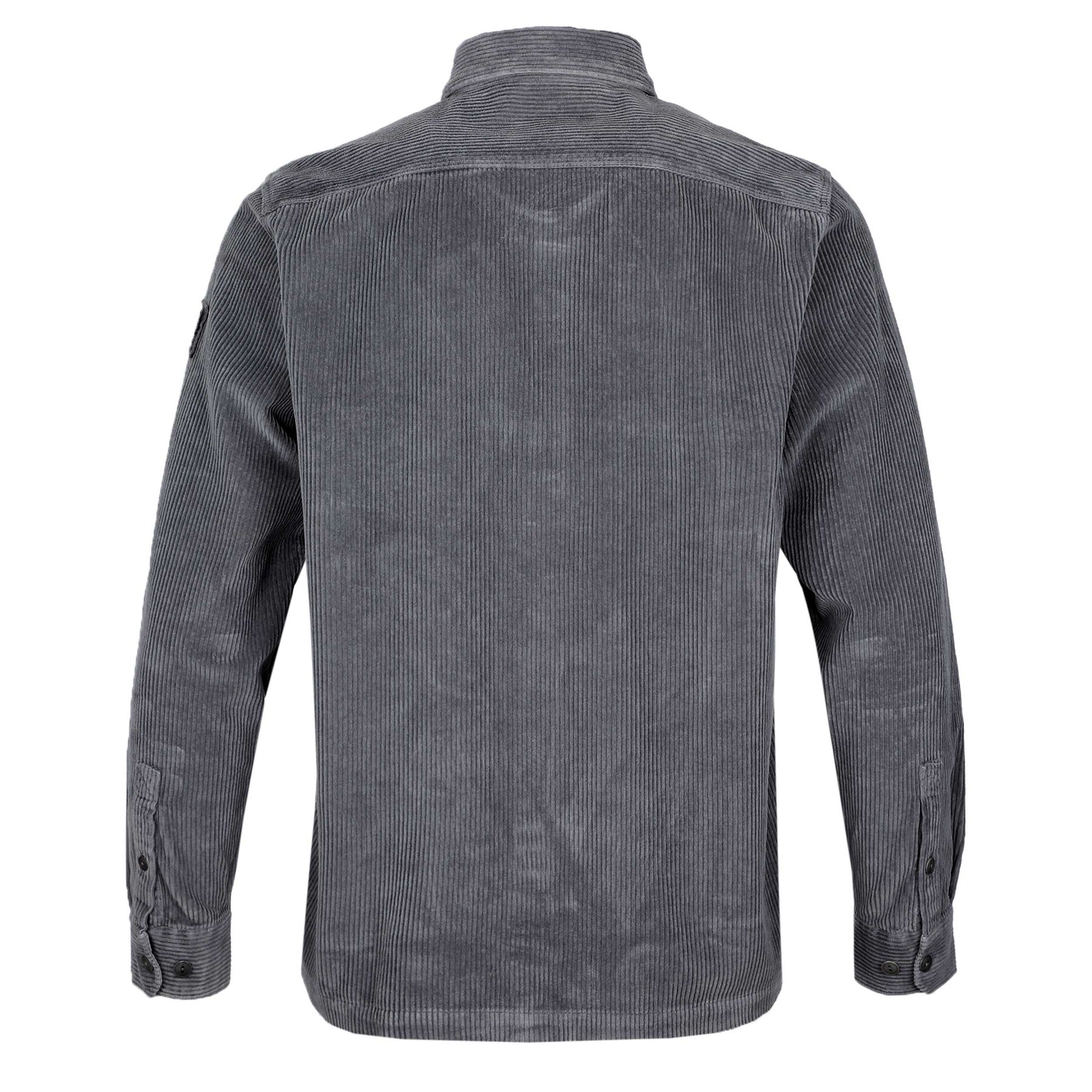 Belstaff Fallgate Shirt in Tornado Grey. A regular fit shirt by Belstaff. Crafted from a heavyweight corduroy, this shirt features a full button fastening placket and a two button fastening chest pockets. One of the chest pockets has a contrasting fabric design. Finished with the Belstaff logo on the left sleeve. Perfect shirt to layer up with a Belstaff t-shirt.