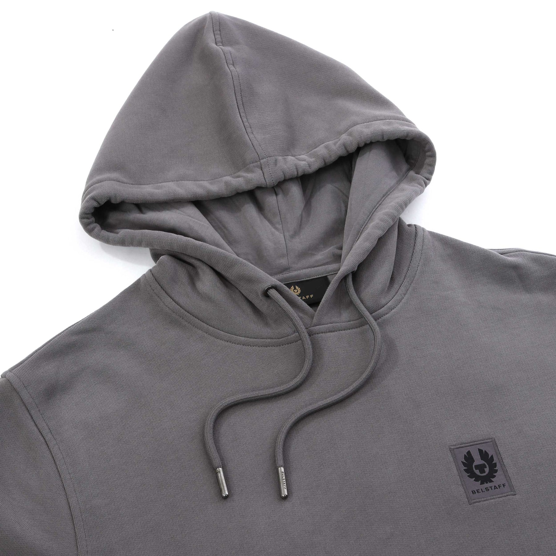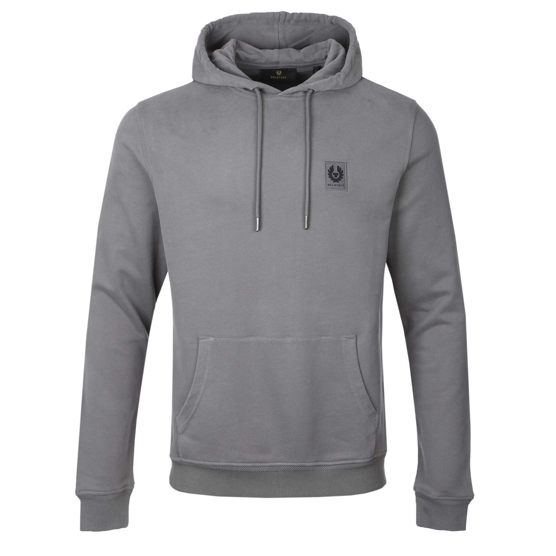 Belstaff Hoodie Sweat Top in Tornado Grey. A classic hoodie by Belstaff. With an adjustable hood with drawstrings and kangaroo pocket to the front. Finished with the Belstaff logo on the chest, perfect for everyday wear.