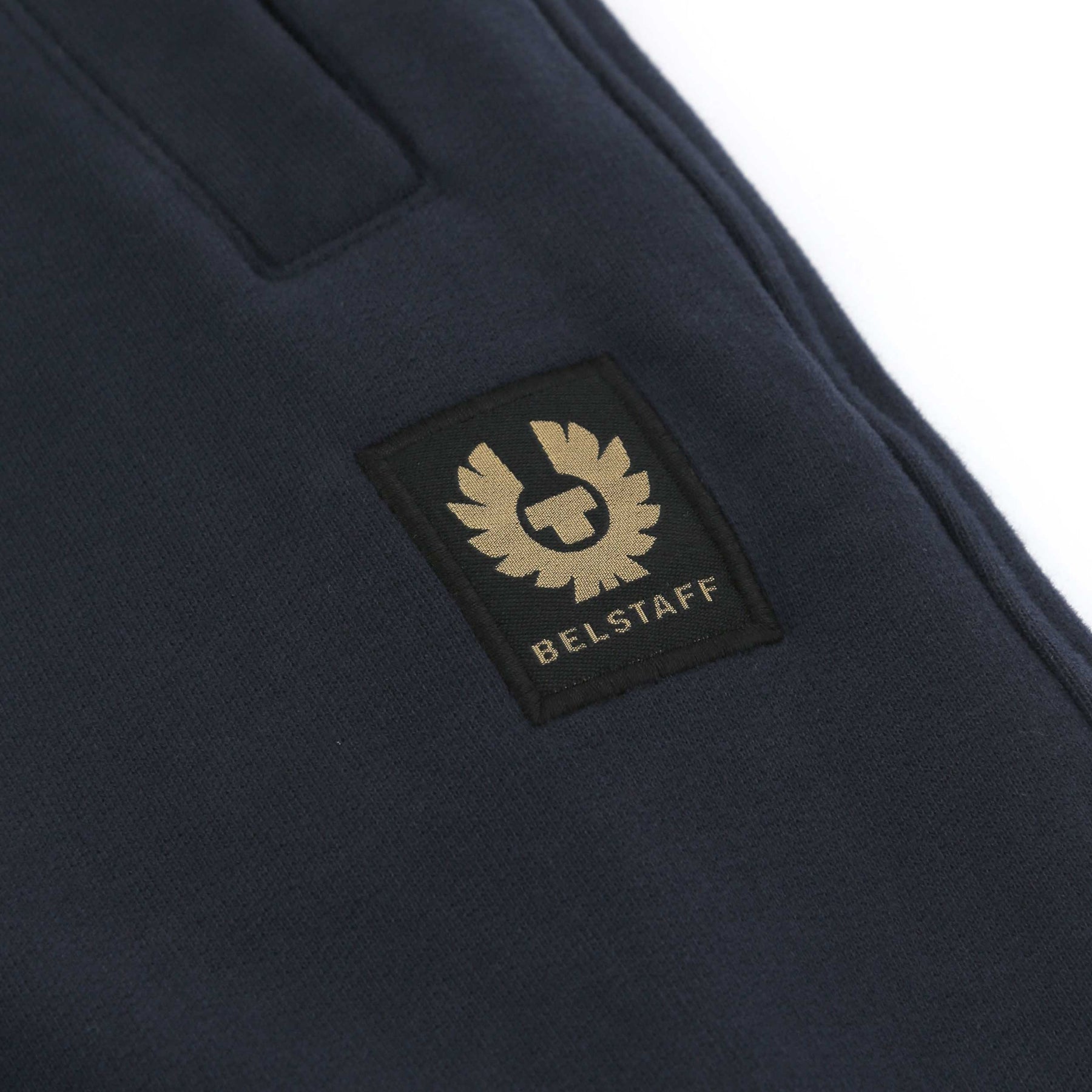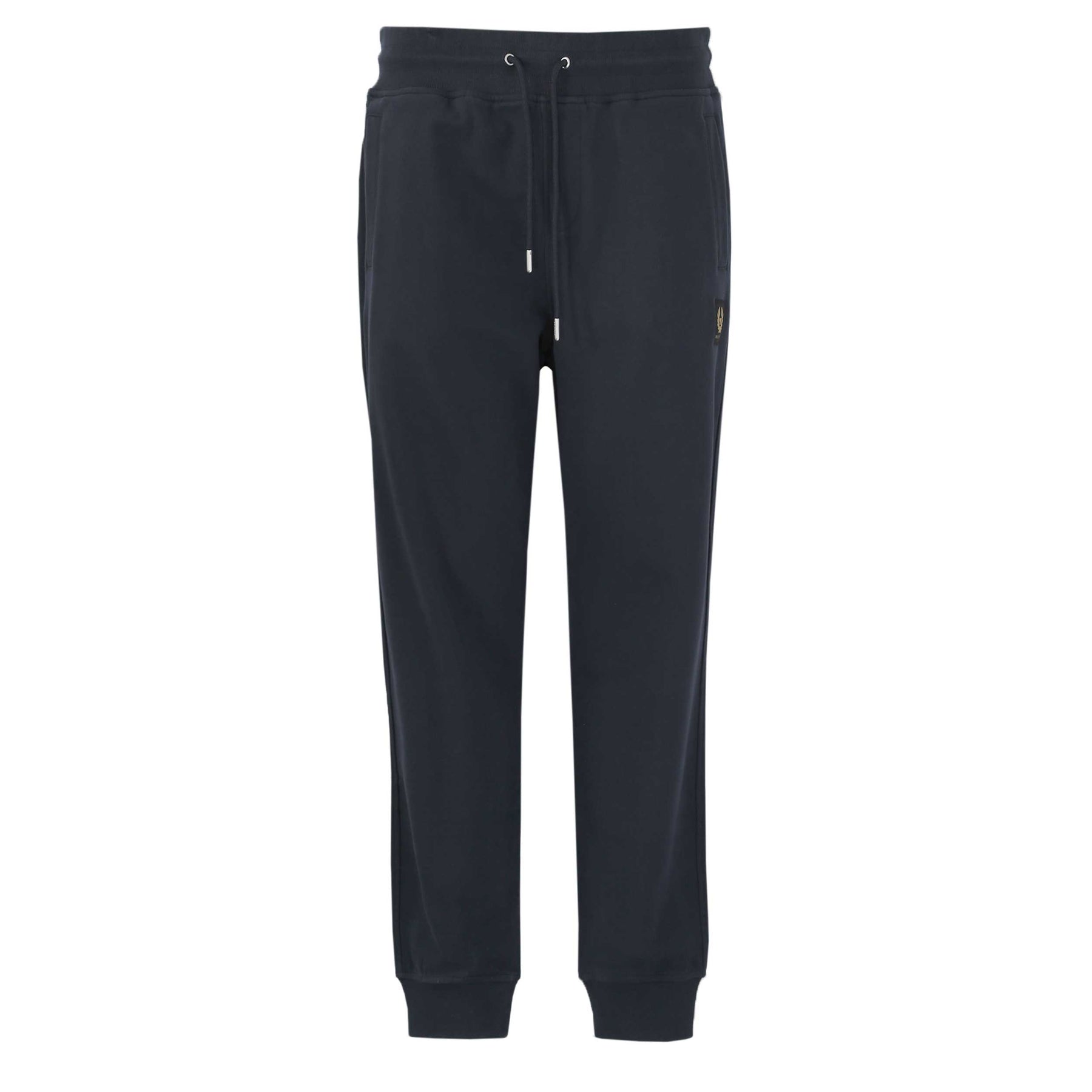 Belstaff Sweatpants in Dark Ink. This sweatpant is constructed with an elasticated drawstring waist, cuffed hems and cuffed ankles. Featuring the iconic Belstaff logo badge embroidered to the left leg. Pair with a Belstaff t-shirt for a casual look.