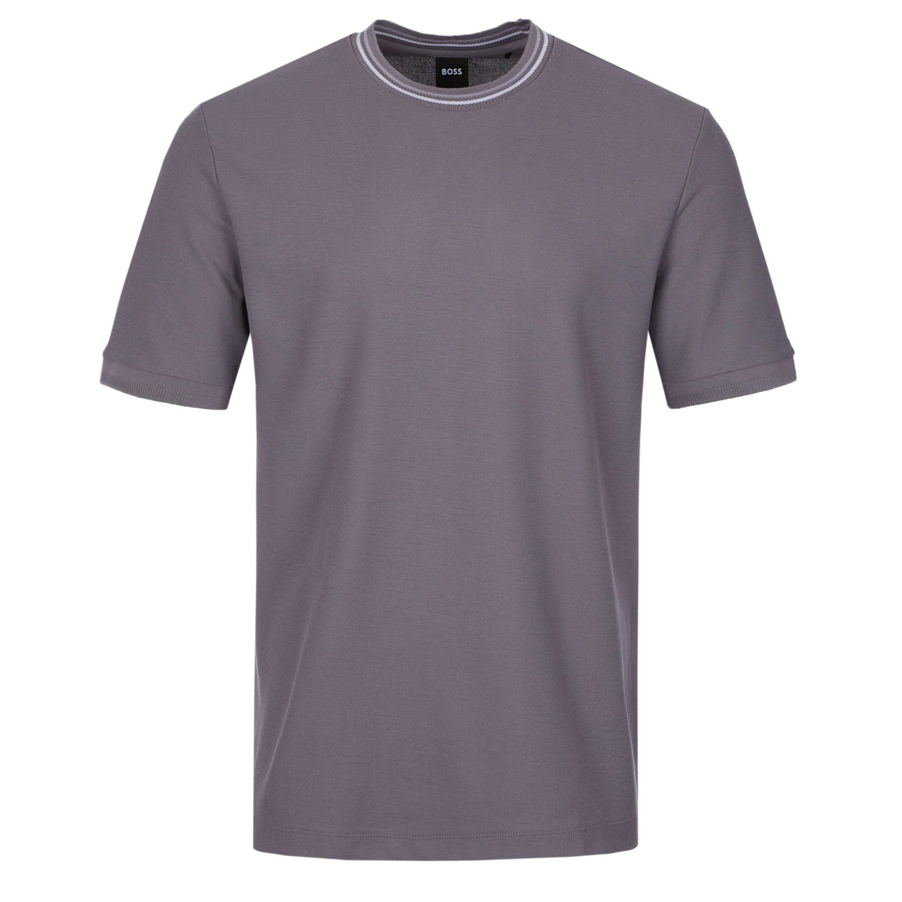 BOSS C Taut 40 T Shirt in Medium Purple. This BOSS regular fit T-shirt delivers effortless casual style with refined sporty detailing. Designed for everyday versatility, it combines premium comfort with subtle texture for an elevated off-duty look. Constructed from soft cotton with a honeycomb piqué structure, the fabric offers natural breathability while adding depth and durability. Sport inspired striped detailing on the collar adds a dynamic edge, while the easy regular fit ensures relaxed comfort and freedom of movement throughout the day.