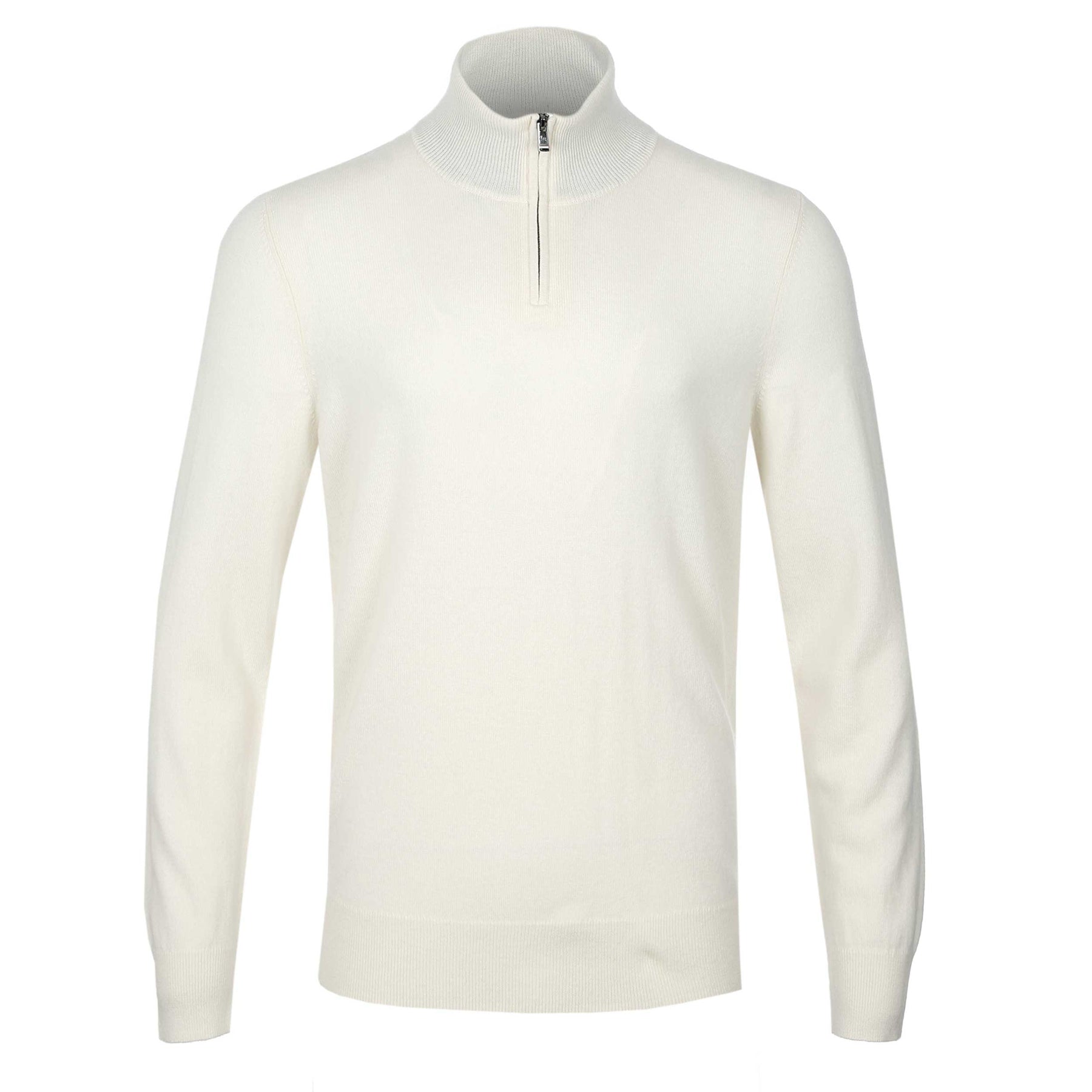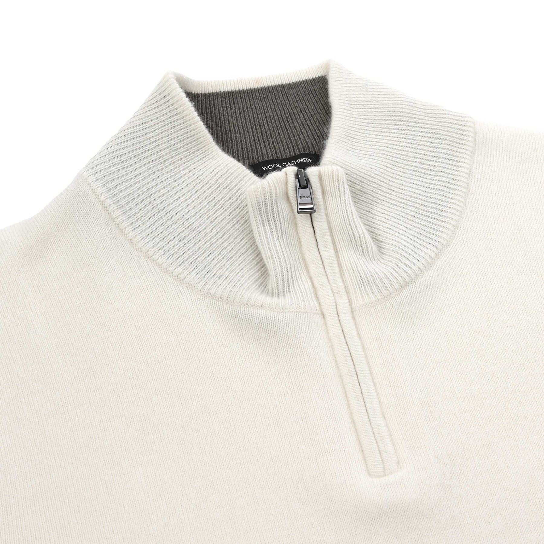 BOSS H Hemarlo Quarter Zip Knitwear in Open White