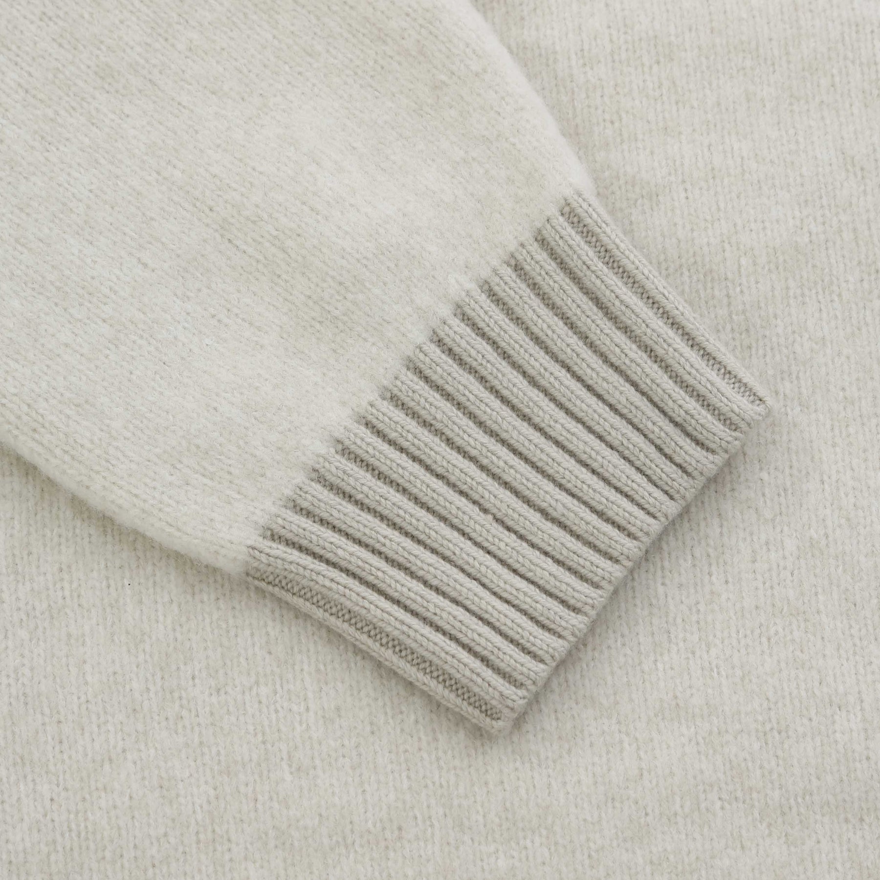 BOSS Kobear Quarter Zip in Light Beige. The BOSS Oversized Kobear Quarter Zip Jumper in Light Beige delivers heavyweight comfort with a modern, relaxed silhouette. Knitted from a luxurious wool blend enriched with yak fibres, it offers exceptional softness, warmth and a rich, textured feel. The plain-knit body is elevated with fully fashioned rib detailing along the seams and shoulders for a subtle, structured finish. A standout layer for transitional seasons and everyday premium wear.