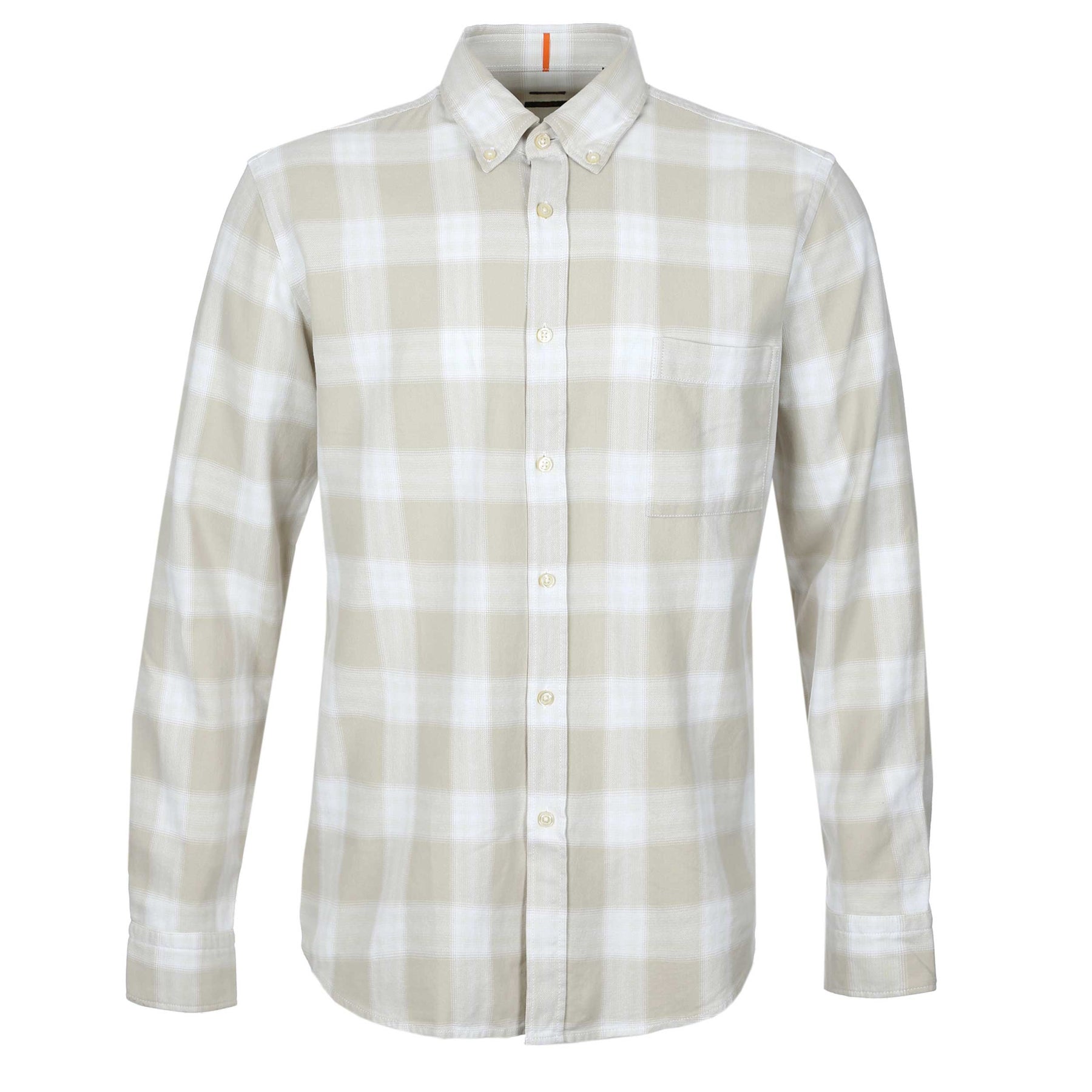BOSS Rickert M Shirt in Light Beige. Long sleeve shirt by BOSS. This regular fitting shirt arrives with a soft pointed collar with button down feature. Check design shirt with a breast pocket. A full button fastening shirt constructed from 100% cotton. Rounded cuffs. Finished with a BOSS logo tab.