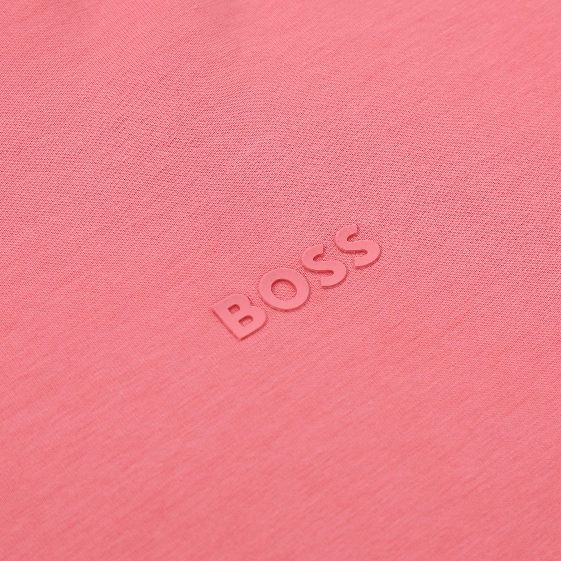 BOSS TChup T-Shirt in Light Pastel Red. A regular fit BOSS T-Shirt with a crew neck. Plain T-Shirt with a tonal BOSS logo in the centre of the chest. Perfect casual T-Shirt to be teamed up with either jeans or sweat pants.