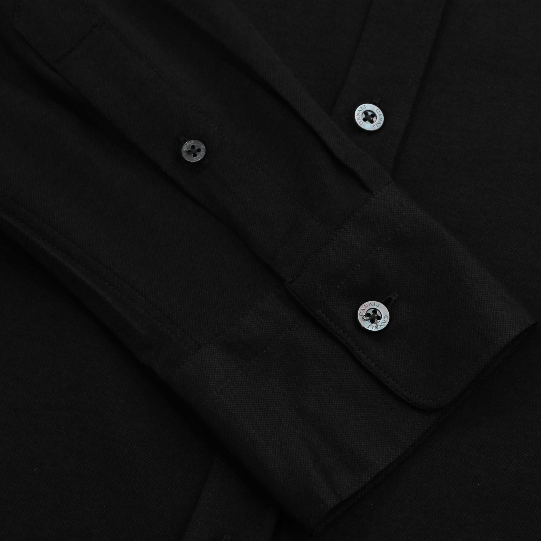Canali Basic Jersey Stretch Shirt in Black. Long sleeve shirt by Canali cut to a slim fit. This classic shirt arrives in a plain design with a full button fastening placket. Stretch properties to the shirt. Soft pointed collar.