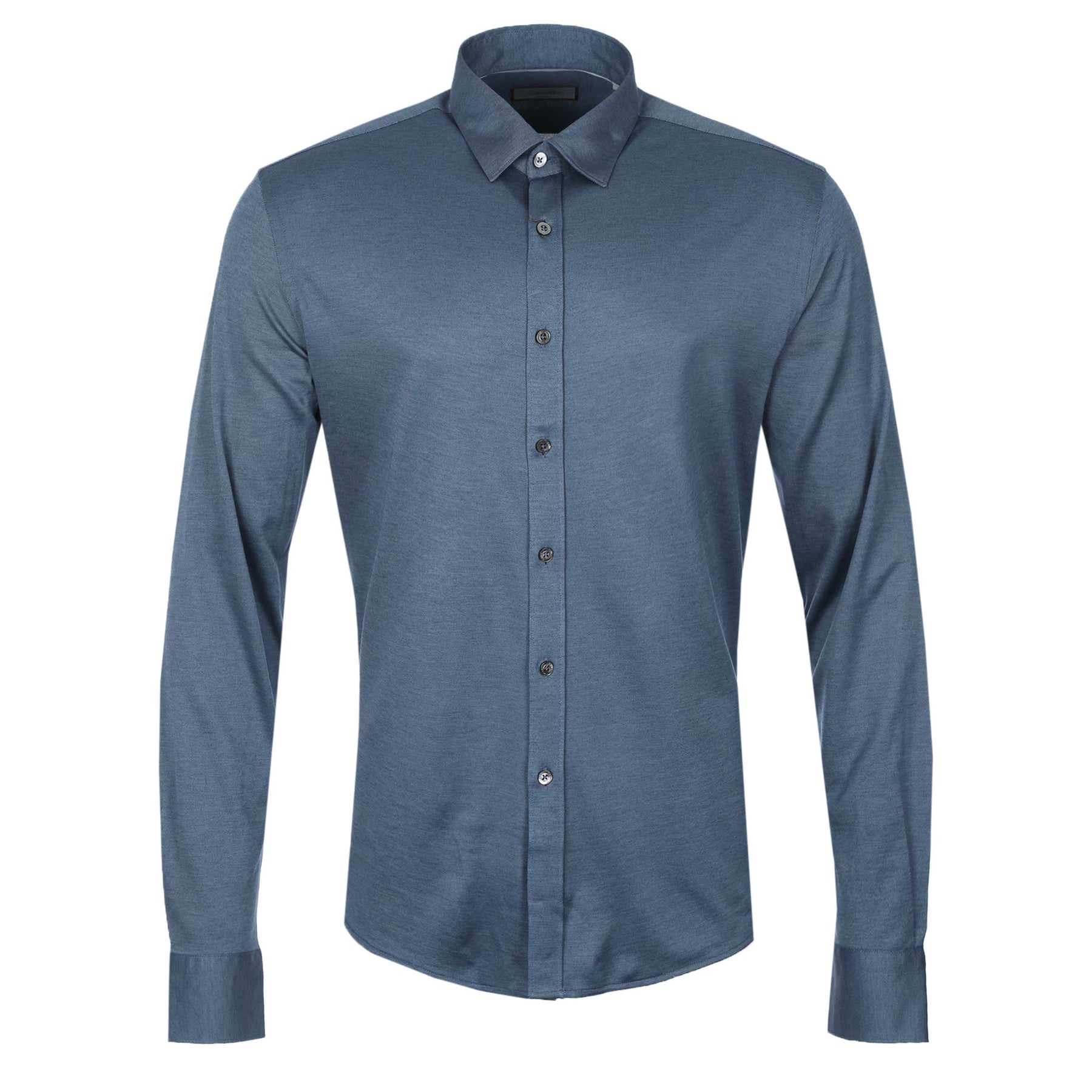 Canali Basic Stretch Shirt in Blue. Long sleeve shirt by Canali cut to a slim fit. This classic shirt arrives in a plain design with a full button fastening placket. Stretch properties to the shirt. Soft pointed collar.