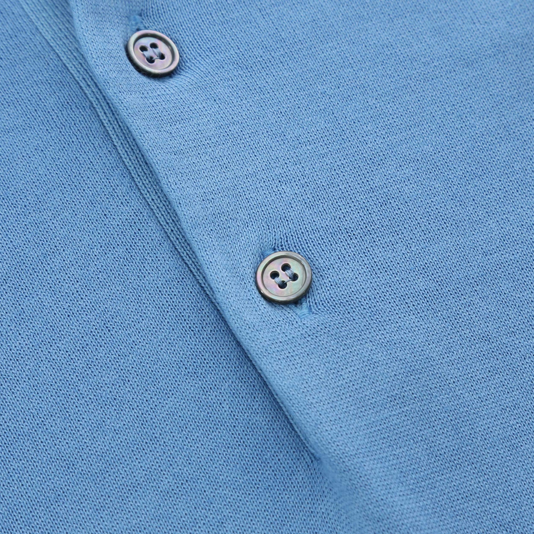 The design features a three button placket adorned with exquisite iridescent mother of pearl buttons, enhancing the polo's elegant aesthetic. Ribbed detailing at the collar, cuffs, and waistband not only adds a touch of modernity but also ensures a comfortable fit. This knitwear is perfect for layering or wearing on its own, making it a staple in your fashion lineup.