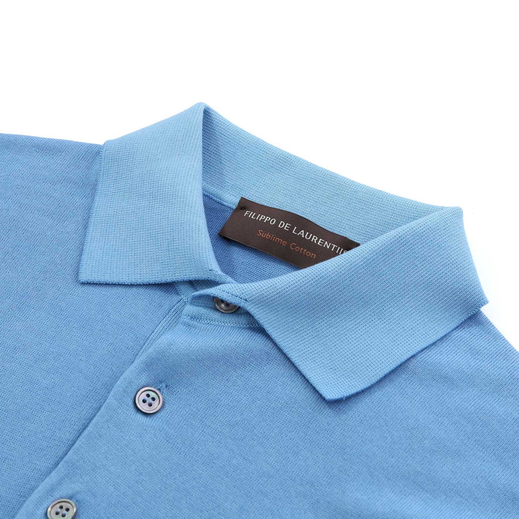 Filippo De Laurentiis 3 Button Washed Dye Polo Shirt in Sky Blue