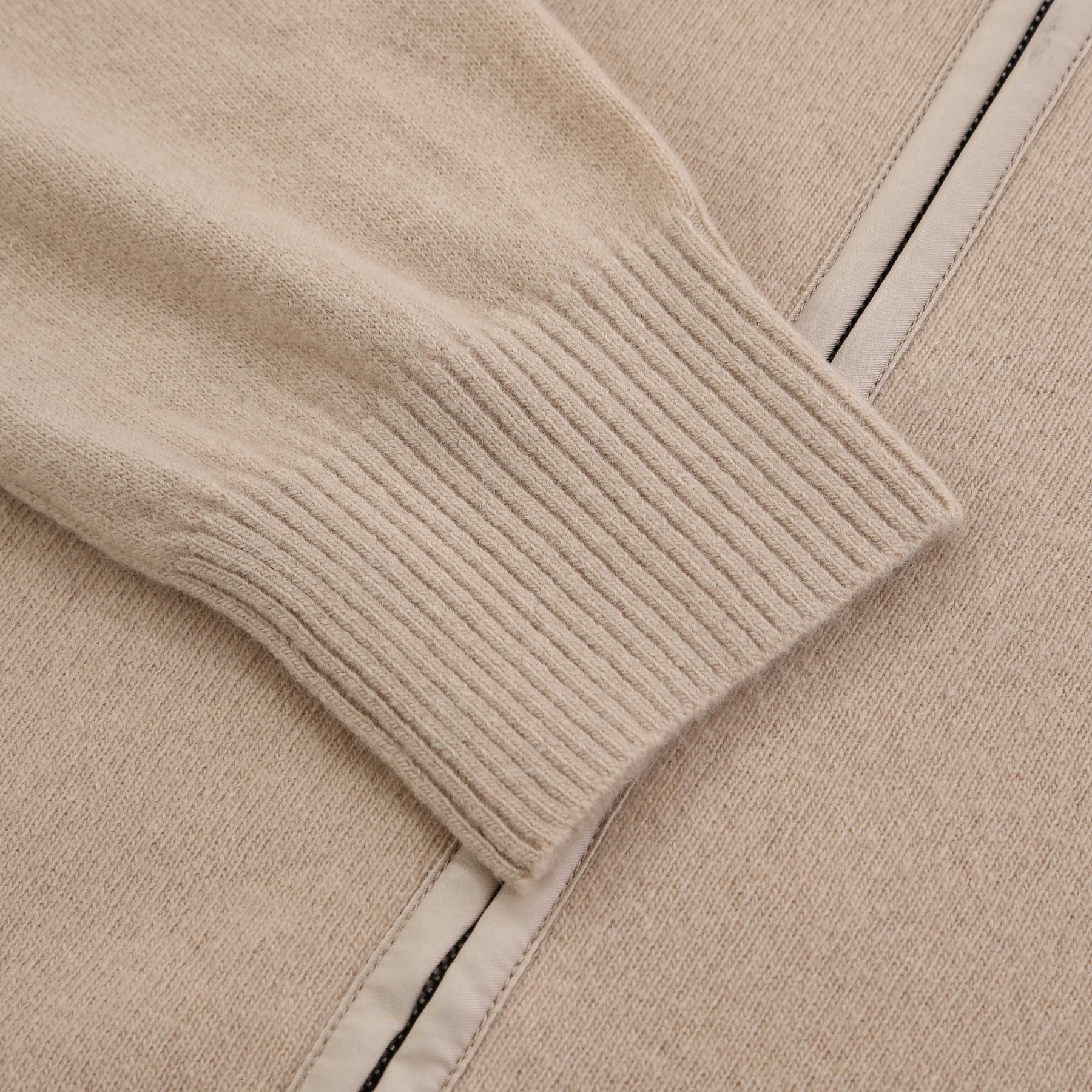 The design features contrasting cotton panels on the shoulders and collar, enhancing the cardigan’s aesthetic appeal while providing a structured silhouette. The full zip fastening allows you to easily adjust your look based on the weather, making it a versatile choice. Whether you’re layering up for a colder day or dressing down for a relaxed outing, this cardigan adapts effortlessly to your style needs. Additionally, the unique suede throat latch fastening detail adds an element of sophistication that distinguishes it from typical knitwear.