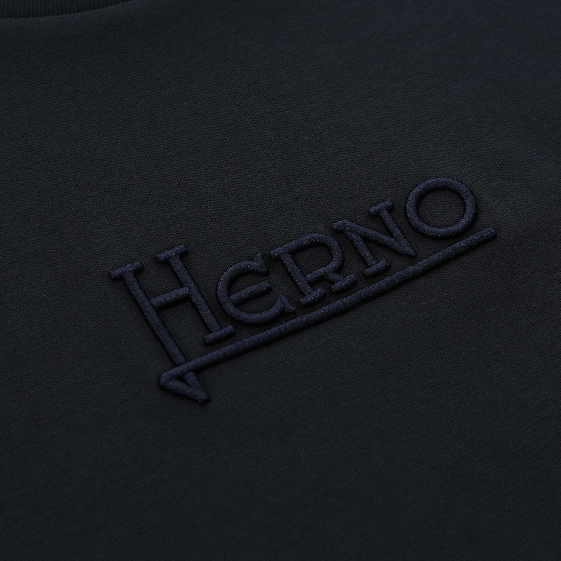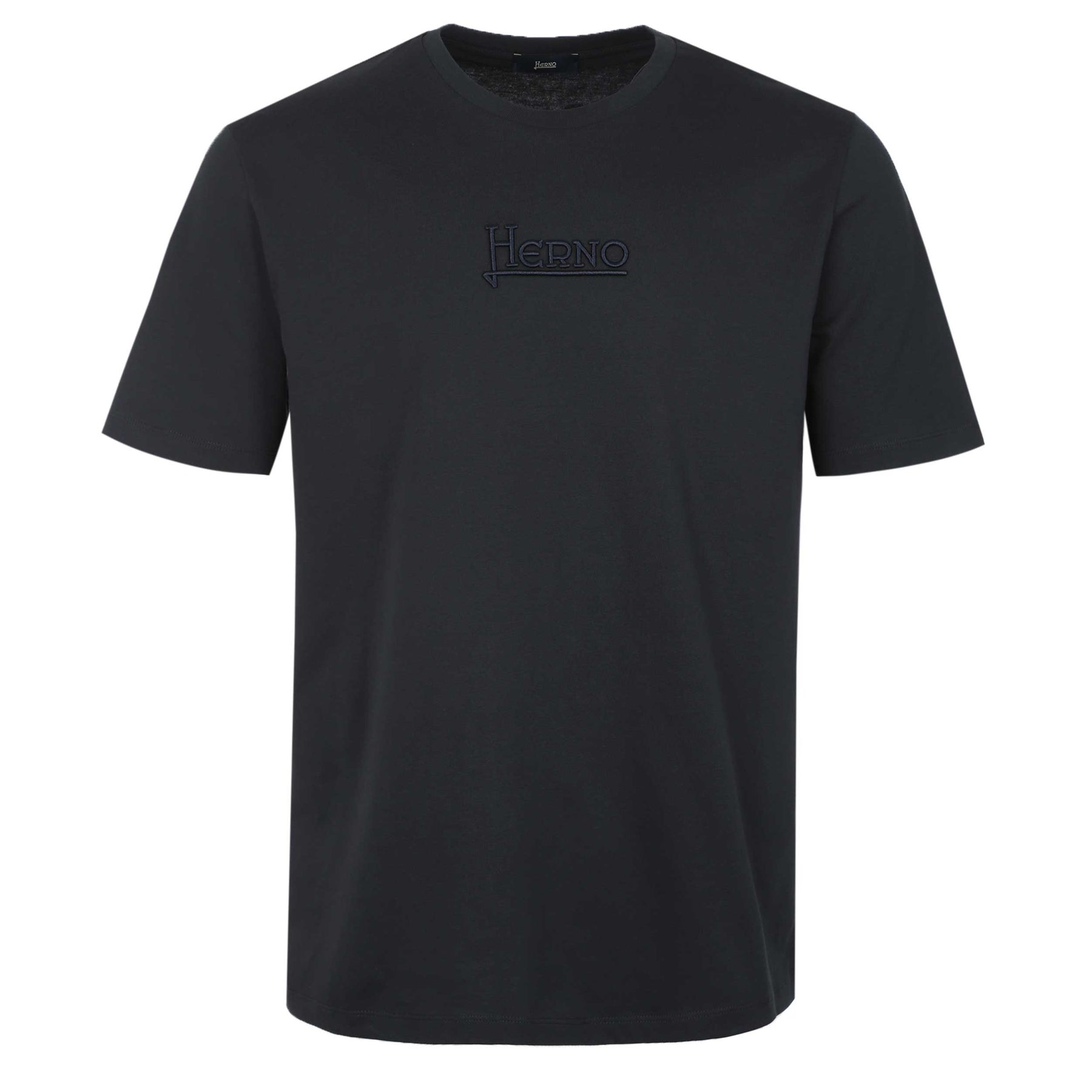 Herno Logo T-Shirt in Navy. Discover the exceptional comfort and style of the Herno Logo T-Shirt in Navy. This sophisticated t-shirt is expertly crafted from premium cotton, offering a soft, breathable, and lightweight feel that ensures all-day comfort. The modern, minimalist design makes it a versatile addition to any wardrobe, whether you're dressing up for a business meeting or keeping it casual on the weekends.