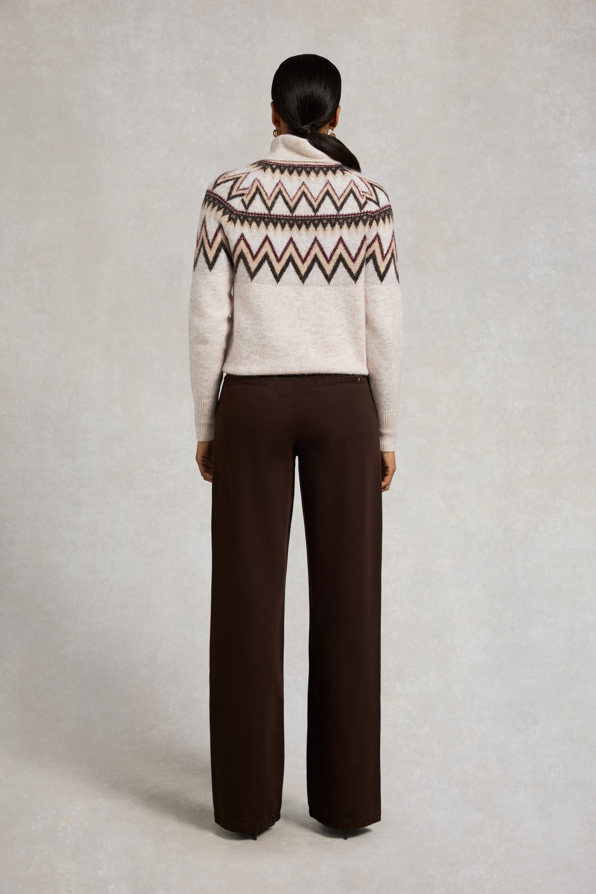 The classic Fairisle pattern adds a touch of seasonal charm, making the Alice Roll Neck Knit not just a functional garment but a fashionable statement. It stands out with its refined detailing, including signature HC hardware on the cuffs and a sophisticated logo plaque at the roll neck, elevating your knitwear game to new heights.