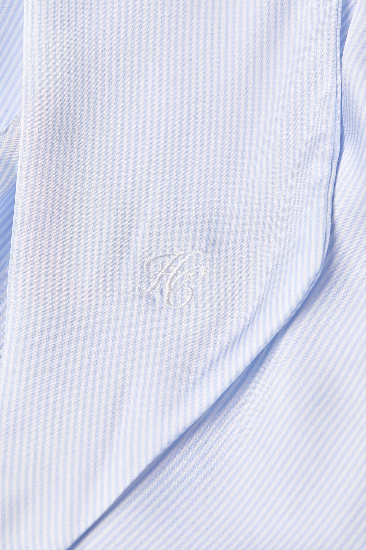 This blouse features an oversized bow collar that brings a chic and stylish flair to your outfit. The half zip placket allows for easy wear, while the floaty sleeves enhance the overall feminine silhouette. The cuffs are detailed with a five-button fastening, providing an extra element of sophistication. At the back, you'll find the signature gold Holland Cooper hardware, adding a subtle yet striking detail that showcases the quality of this designer piece.