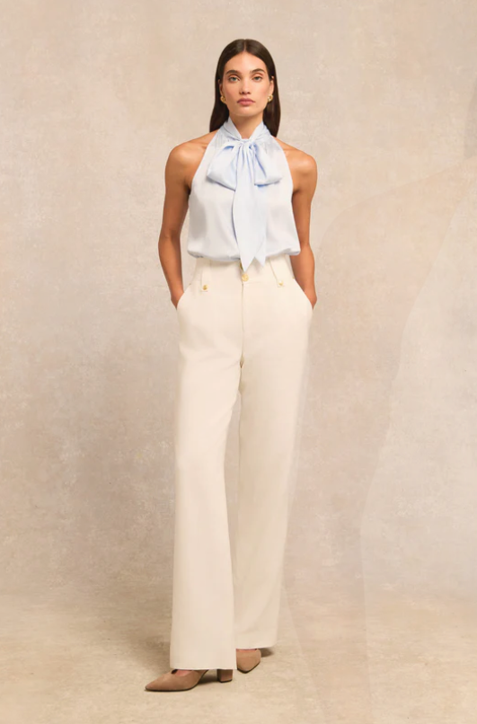 The Holland Cooper Ariella Sleeveless Blouse in Sky Stripe is a stunning addition to your wardrobe that exudes sophistication and elegance. This beautifully crafted blouse is made from luxurious satin fabric, ensuring a comfortable and flattering fit.