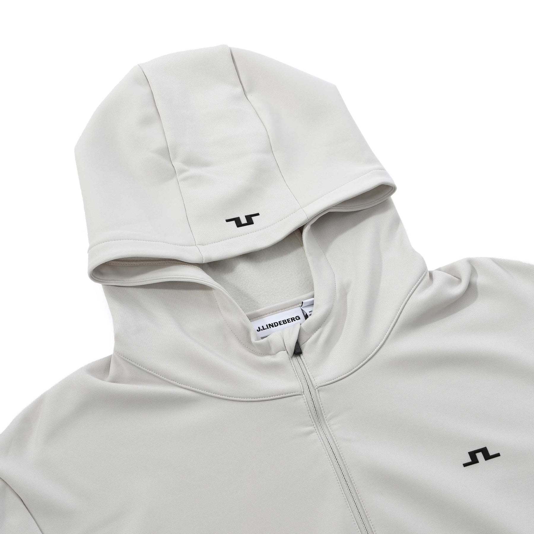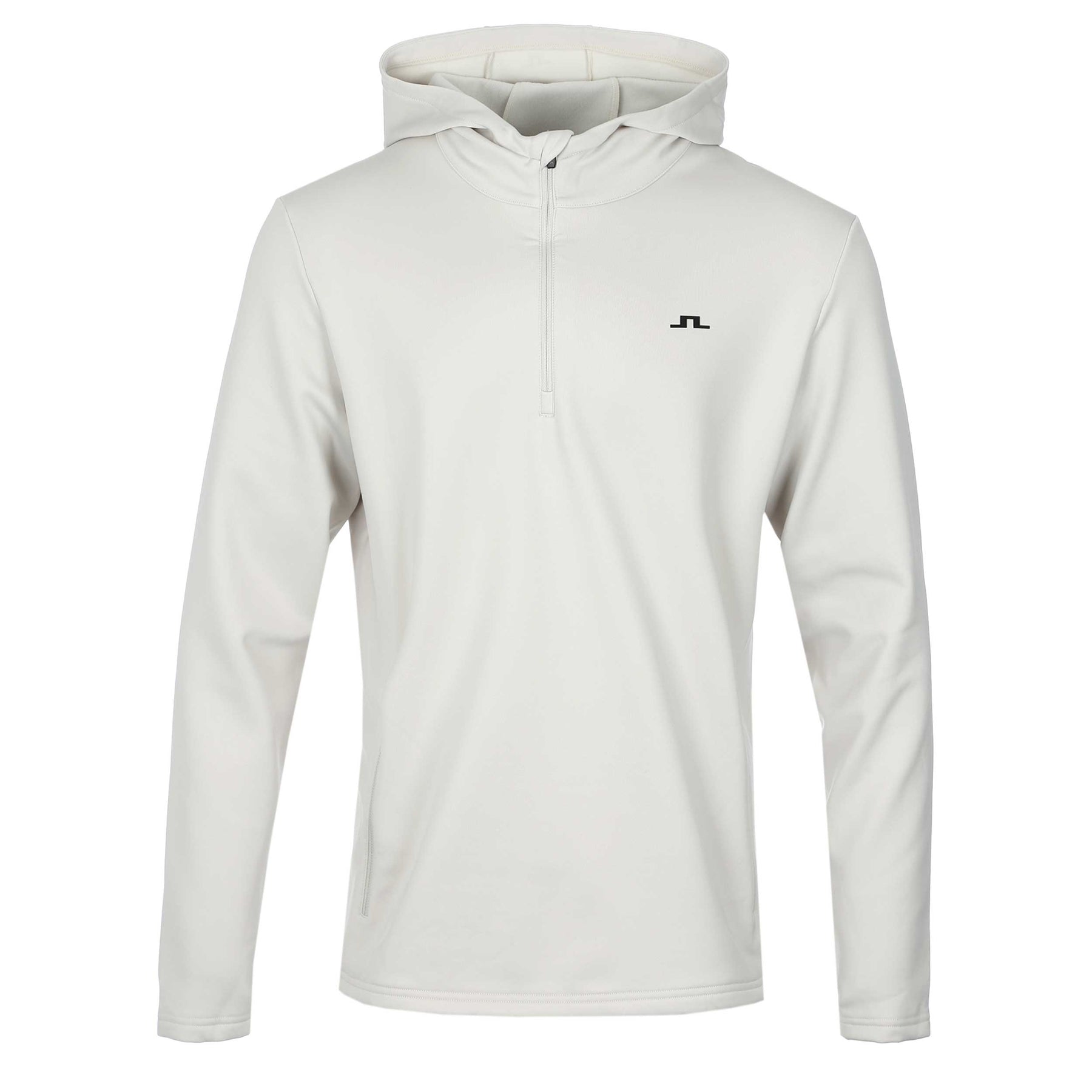 J.Lindeberg Aerial Quarter Zip Hood in Moonbeam. Designed for active comfort and versatile wear, the Aerial Quarter Zip Hood delivers a lightweight feel with a clean, modern edge. Engineered in technical stretch fabric, it offers flexibility, breathability and ease of movement, making it ideal for performance use on the course or everyday wear off it. A streamlined hood and quarter-zip neckline provide adjustable coverage and effortless layering, while the minimalist design ensures a sharp look across sport and lifestyle settings.