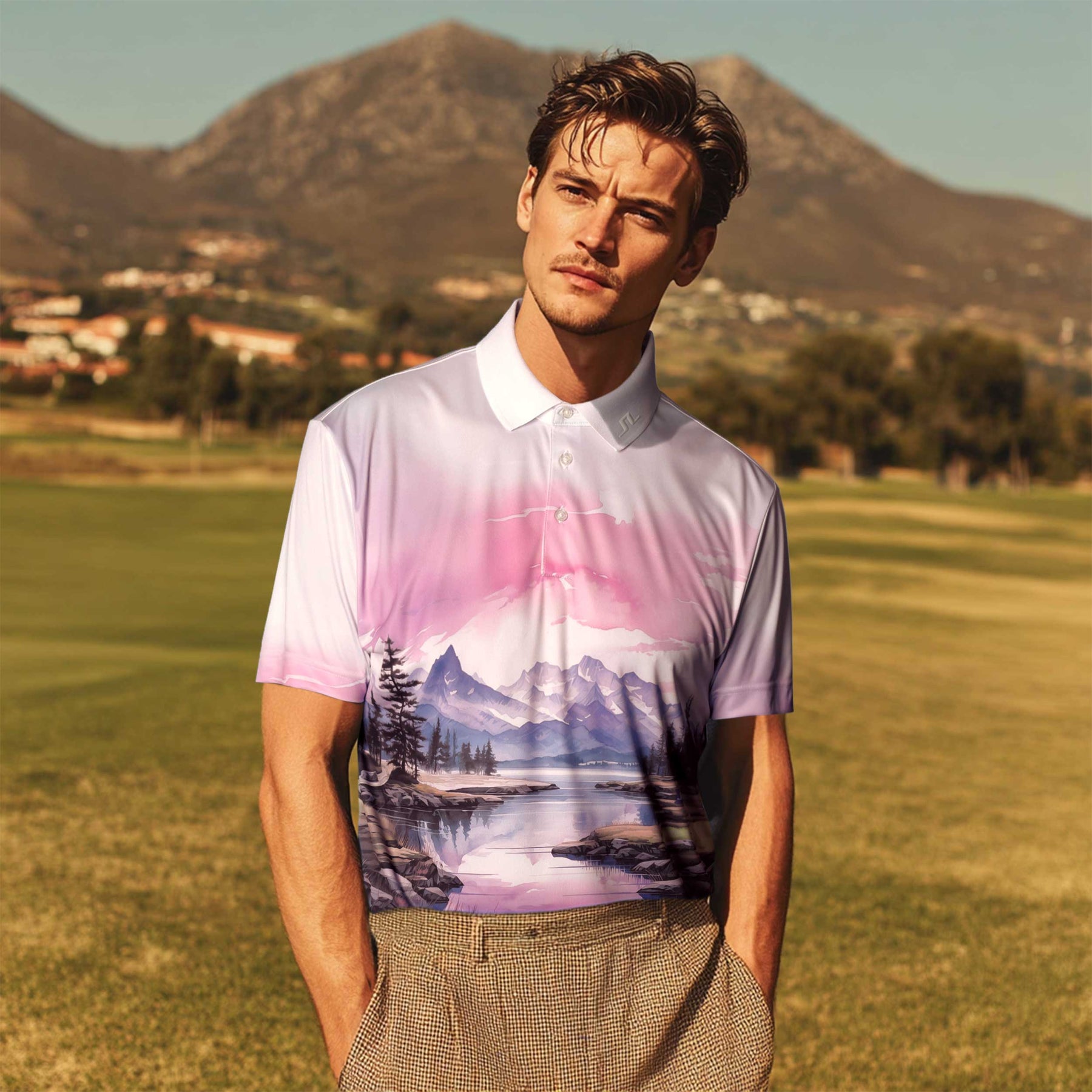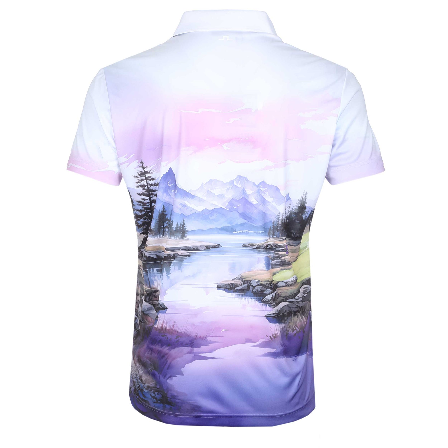 J.Lindeberg Samuel Polo Shirt in Landscape Watercolour Purple