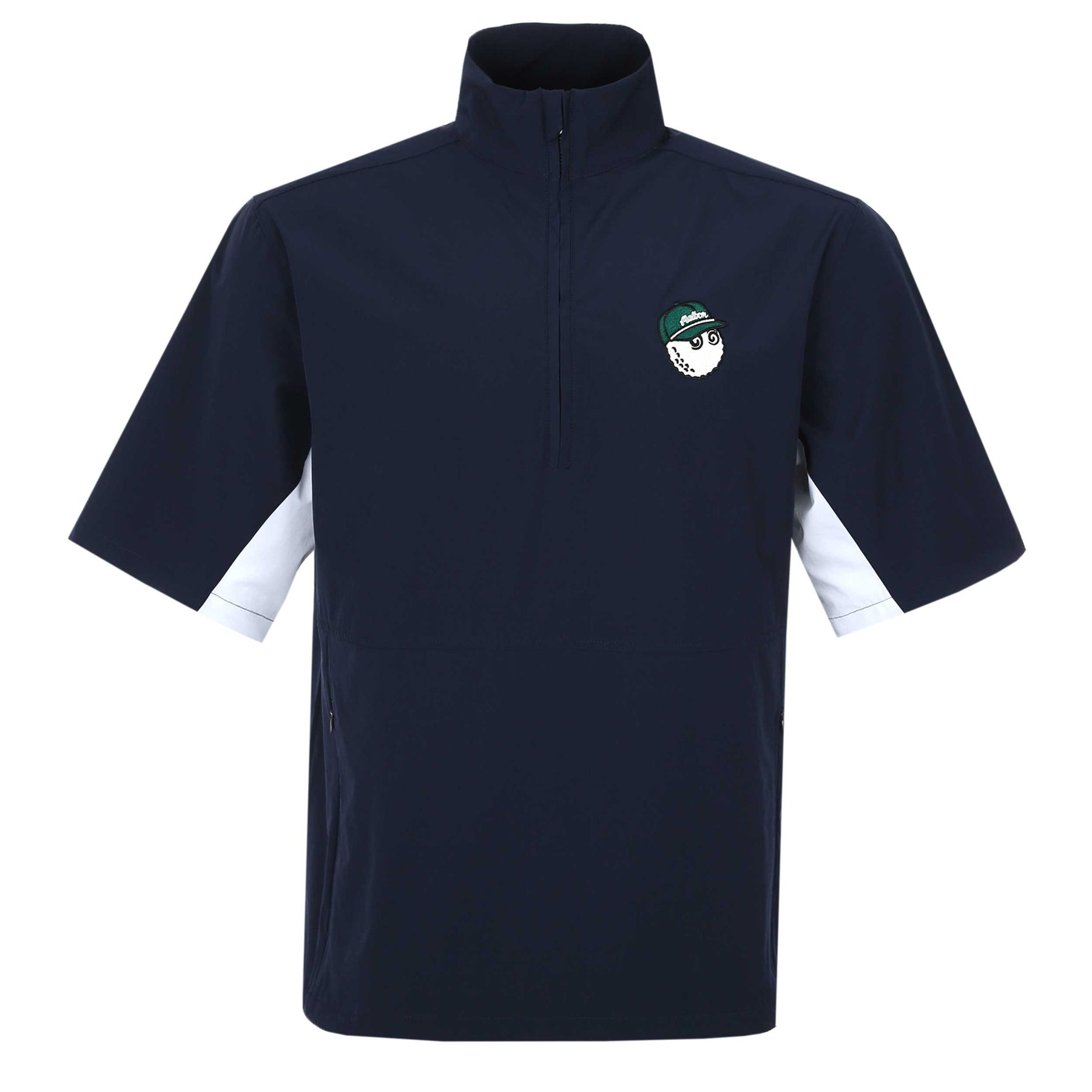 Malbon Pine Windshirt in Navy. Pine Windshirt From Malbons Icons collection, the Pines Windshirt is crafted from lightweight, breathable fabric, it offers unrestricted movement with an adjustable drawstring waist and open back vent for enhanced airflow. Complete with signature Malbon branding, this versatile layer is a year-round essential both on and off the course.