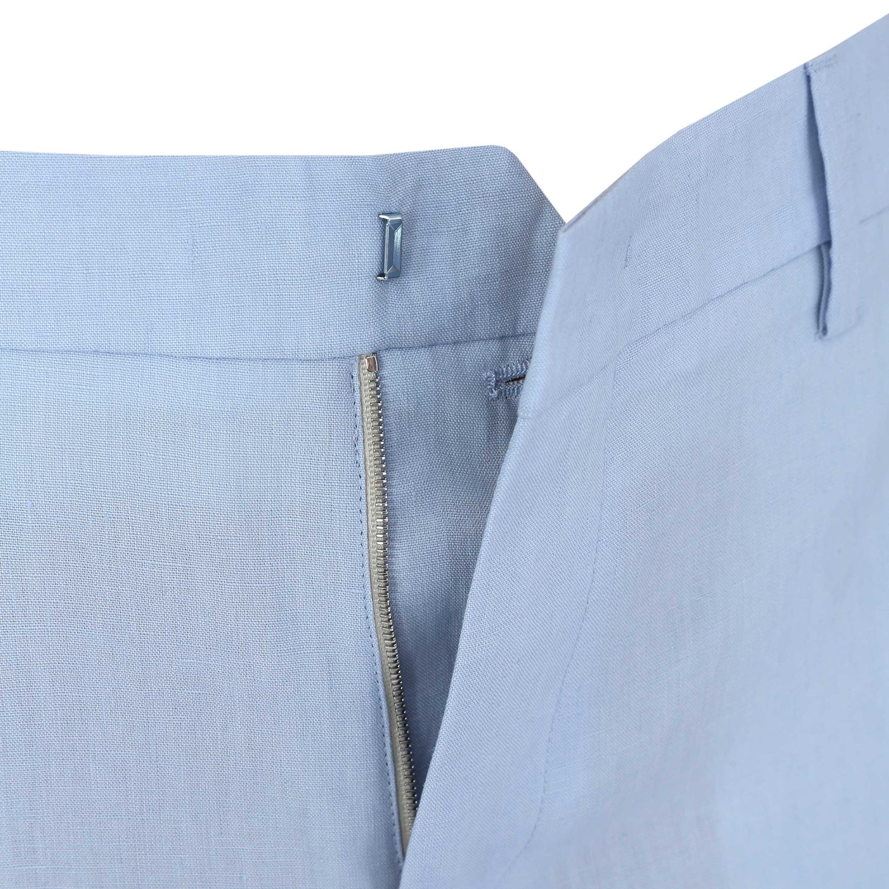 Paul Smith Linen Short in Sky Blue. A classic style short with a regular rise waistband. Constructed from 100% linen. Hook and zip fastening. 2 side slit pockets, 2 welt pockets on the back. Perfect addition to any wardrobe. Team up with either a polo or shirt.