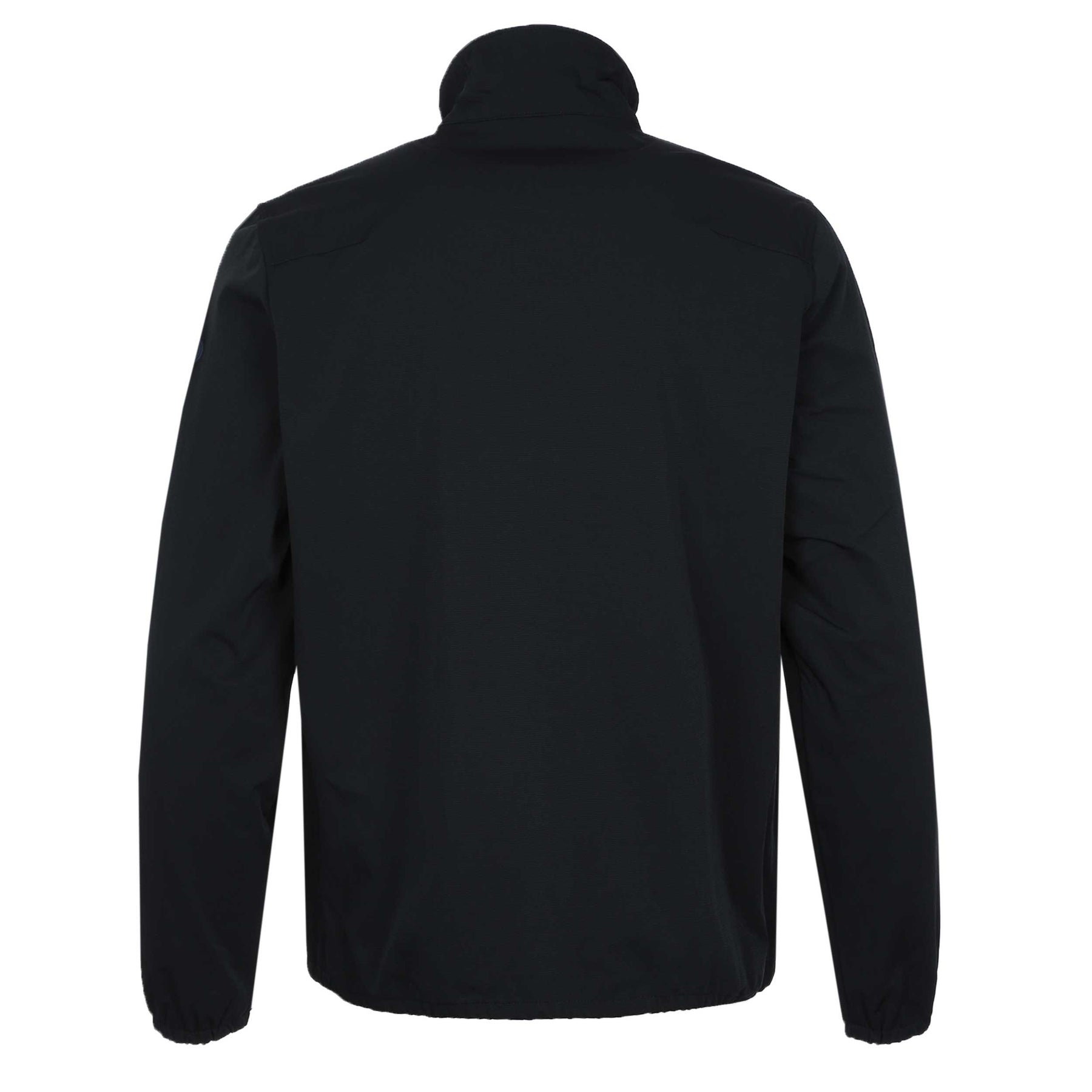 Paul Smith Track Jacket in Black. Lightweight jacket by Paul Smith. A full zip fastening jacket with stretch properties. 1 zip fastening pockets at the chest of the jacket. 2 side entry pockets with press stud fastening. Elasticated cuffs and waistband. Paul Smith logo badge to the sleeve in a contrasting colour.