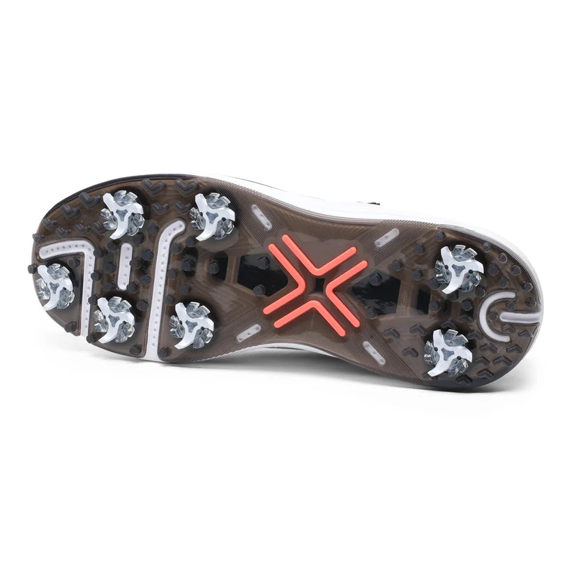 Designed for stability and control, the spikeless multidirectional traction outsole delivers exceptional grip across a range of playing surfaces, ensuring confident footing through every swing. Underfoot, responsive PMXFOAM cushioning provides superior shock absorption and energy return, helping to reduce fatigue and maximise comfort during long rounds.