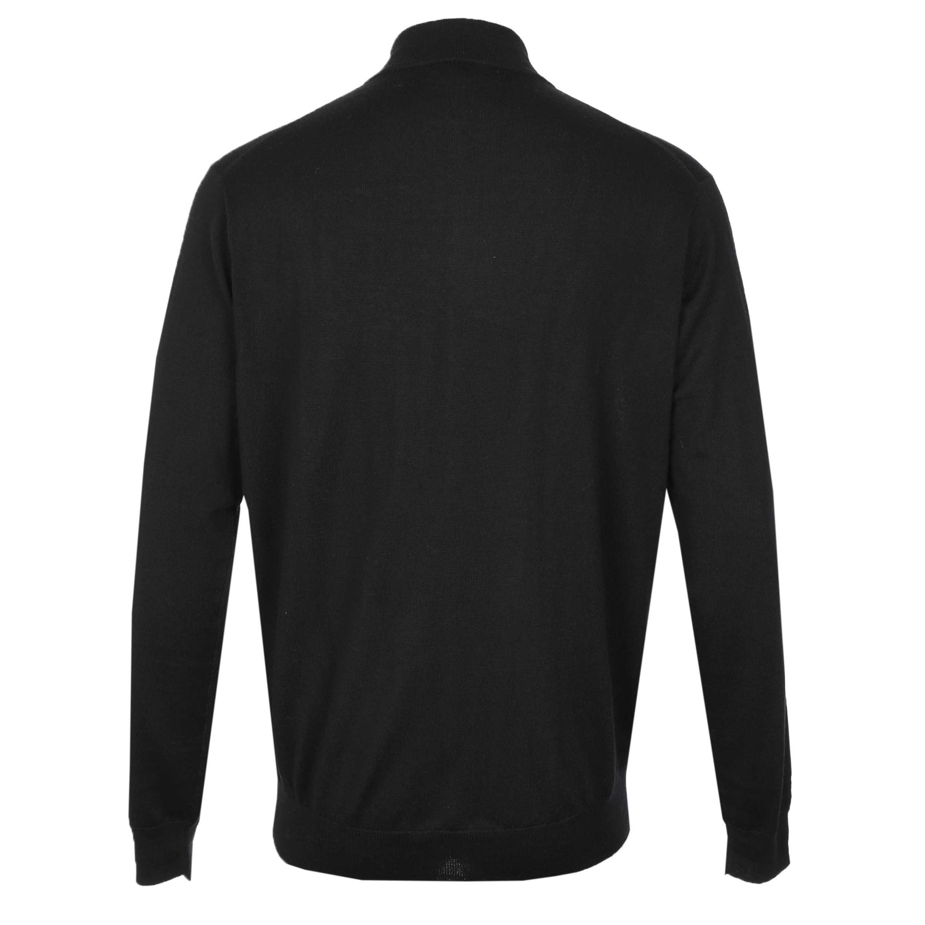 Peter Millar Autumn Crest 1/4 Zip Knitwear in Black. Elevate your seasonal wardrobe with our meticulously crafted long-sleeved mock turtleneck featuring extra-fine merino wool mix. Our carefully designed piece boasts a refined touch, accentuated by a convenient zip and ribbed details to the neck, cuffs and waistband.