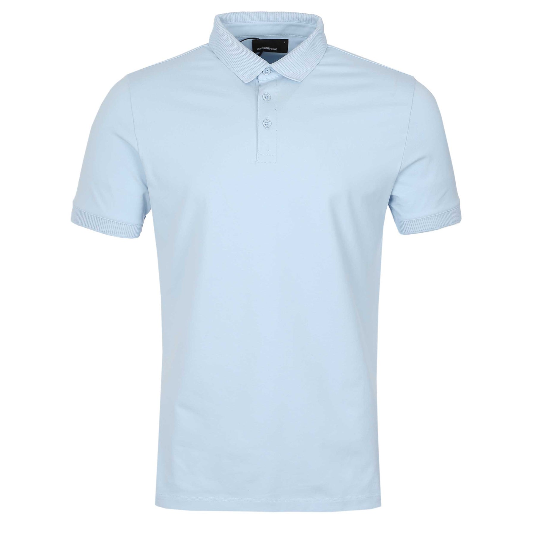 Remus Uomo Basic Plain Polo Shirt in Sky Blue. A regular fit polo shirt by Remus Uomo. Featuring 3 button collar design. Detailed with ribbed cuffs and placket. Perfect to team up with jeans, chinos or shorts.