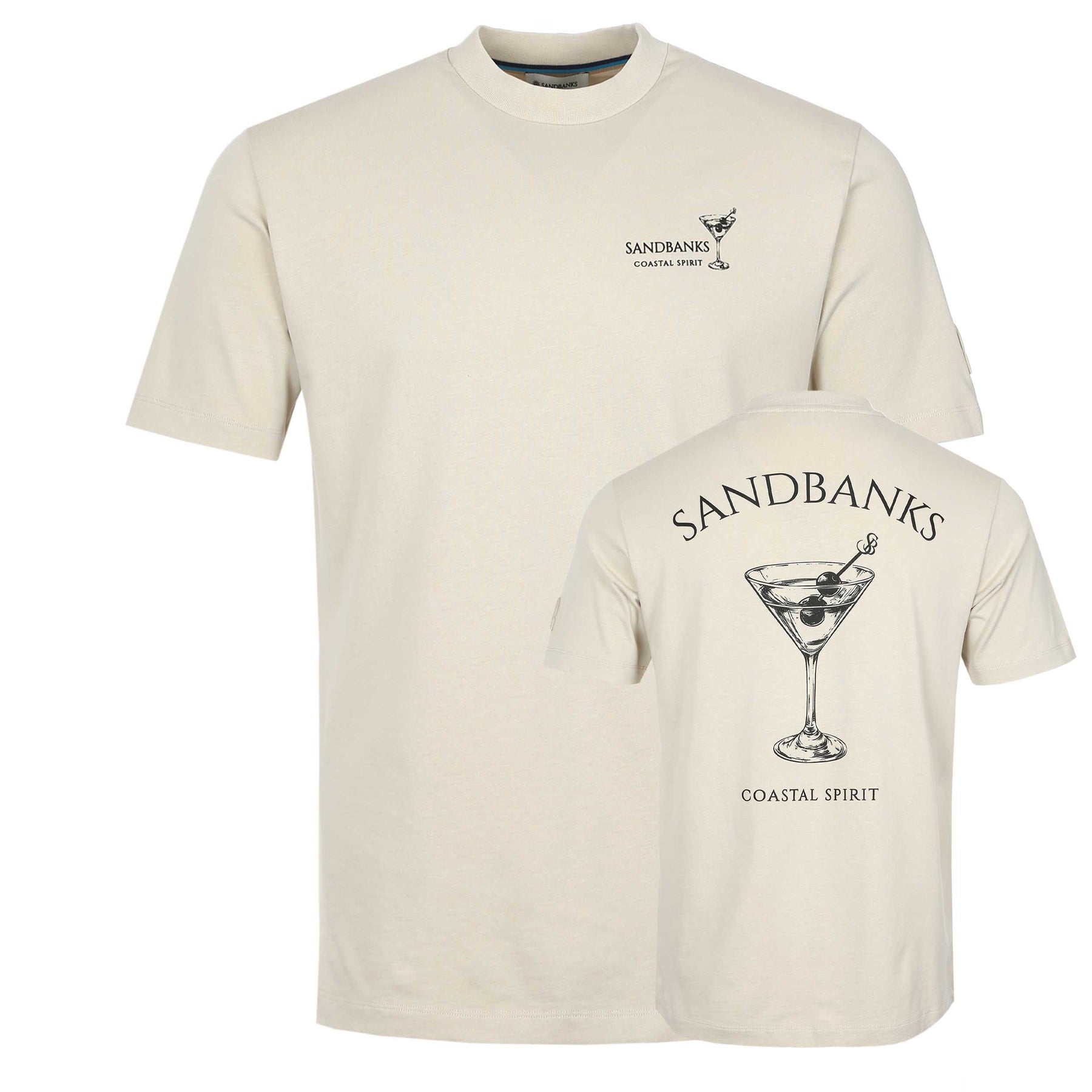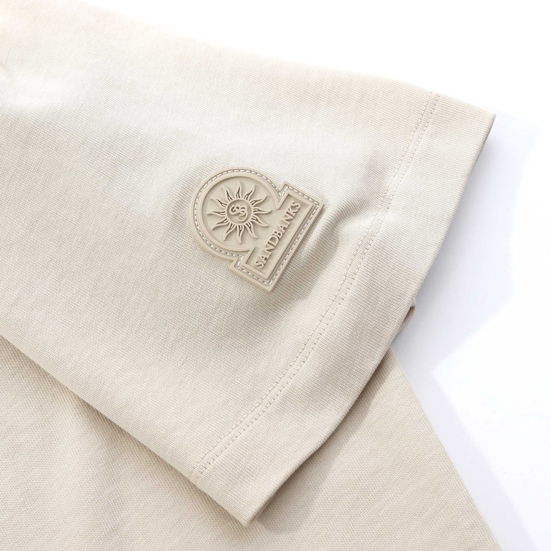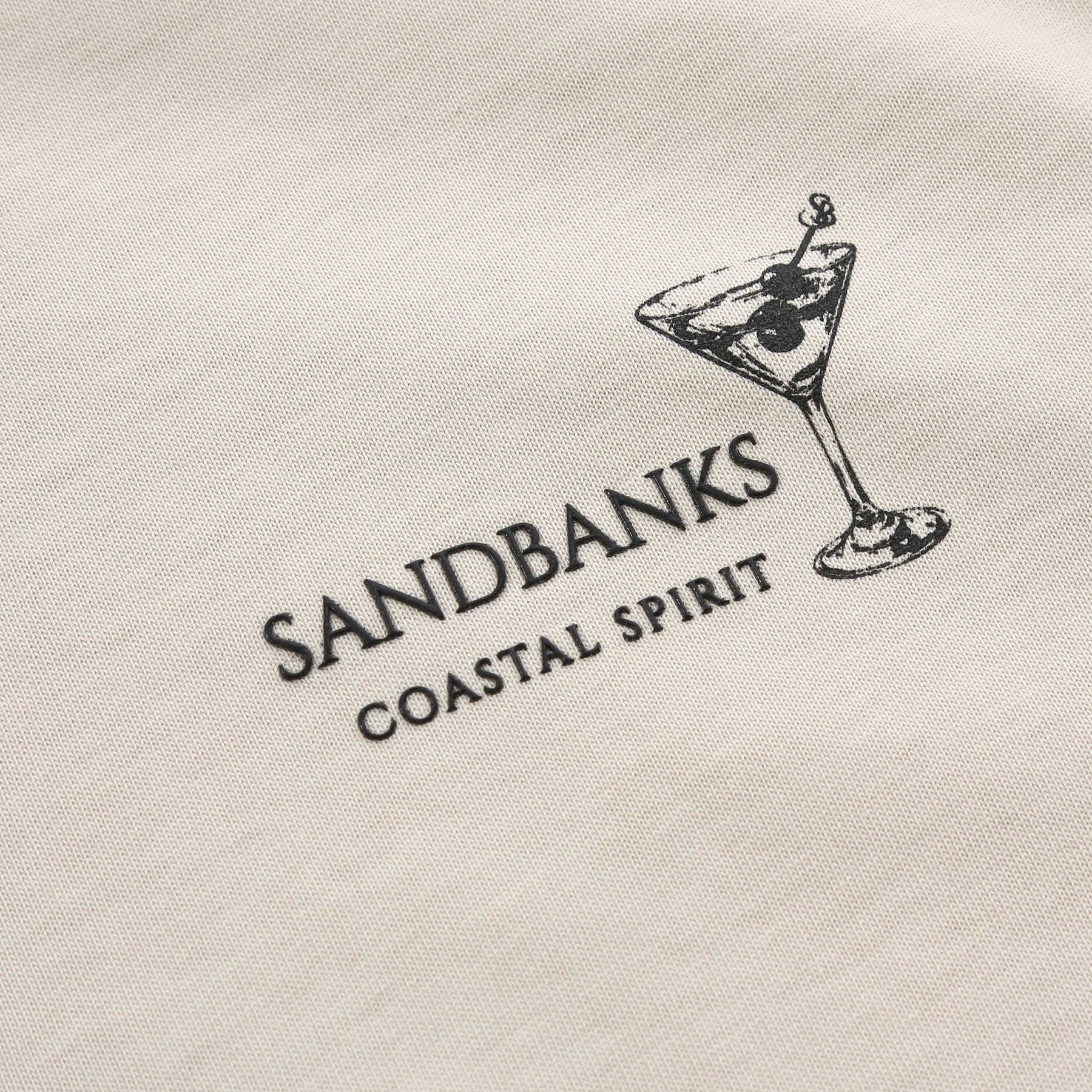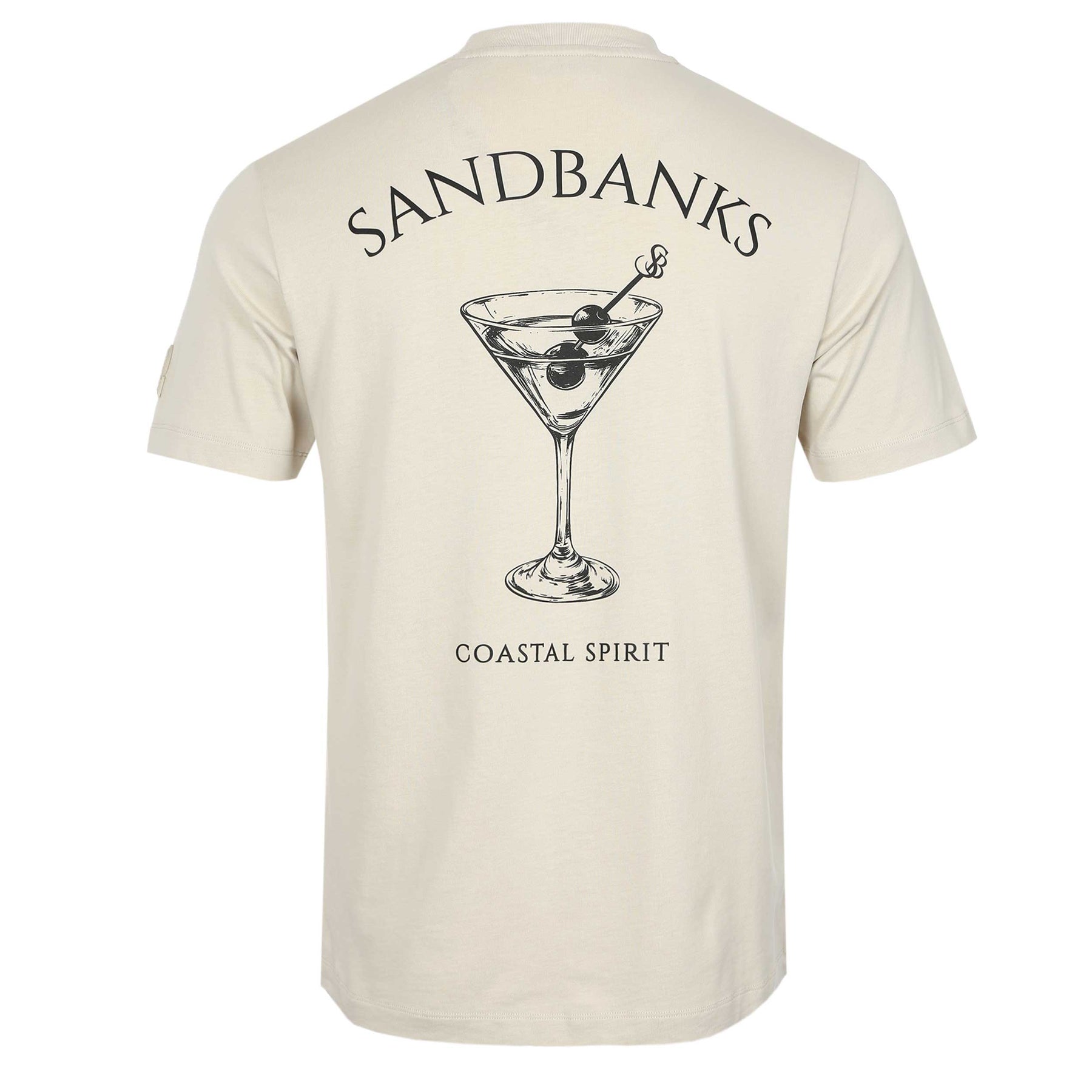 Sandbanks Coastal Spirit T Shirt in Stone. T-shirt by Sandbanks. Relaxed t shirt with short sleeves and a crew neck. Constructed from a mercerised cotton for a luxurious feel. Sandbanks Yacht club logos to the chest and back in a contrasting colour print. Tonal rubber Sandbanks log badge to the left sleeve.
