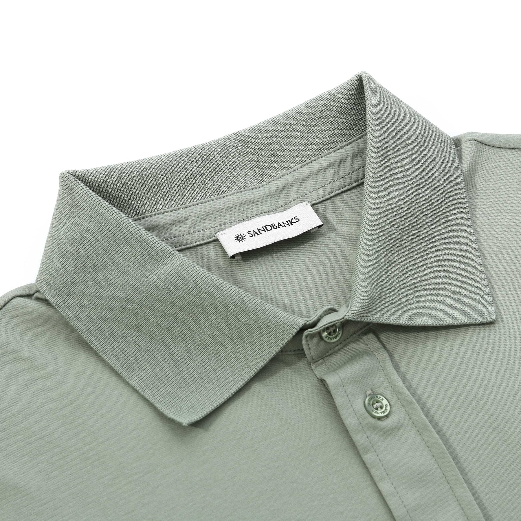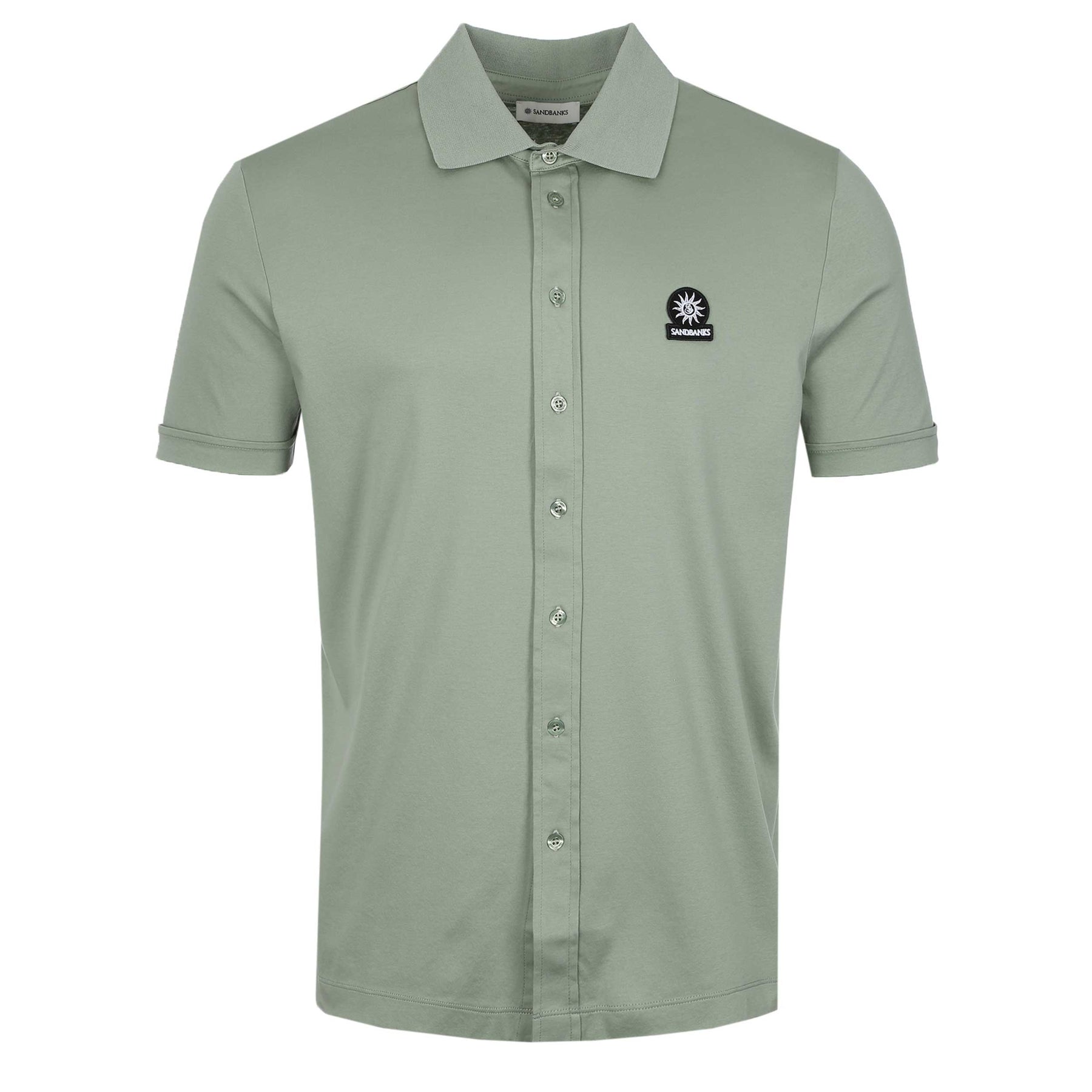 Sandbanks Interlock Full Button Polo Shirt in Sage